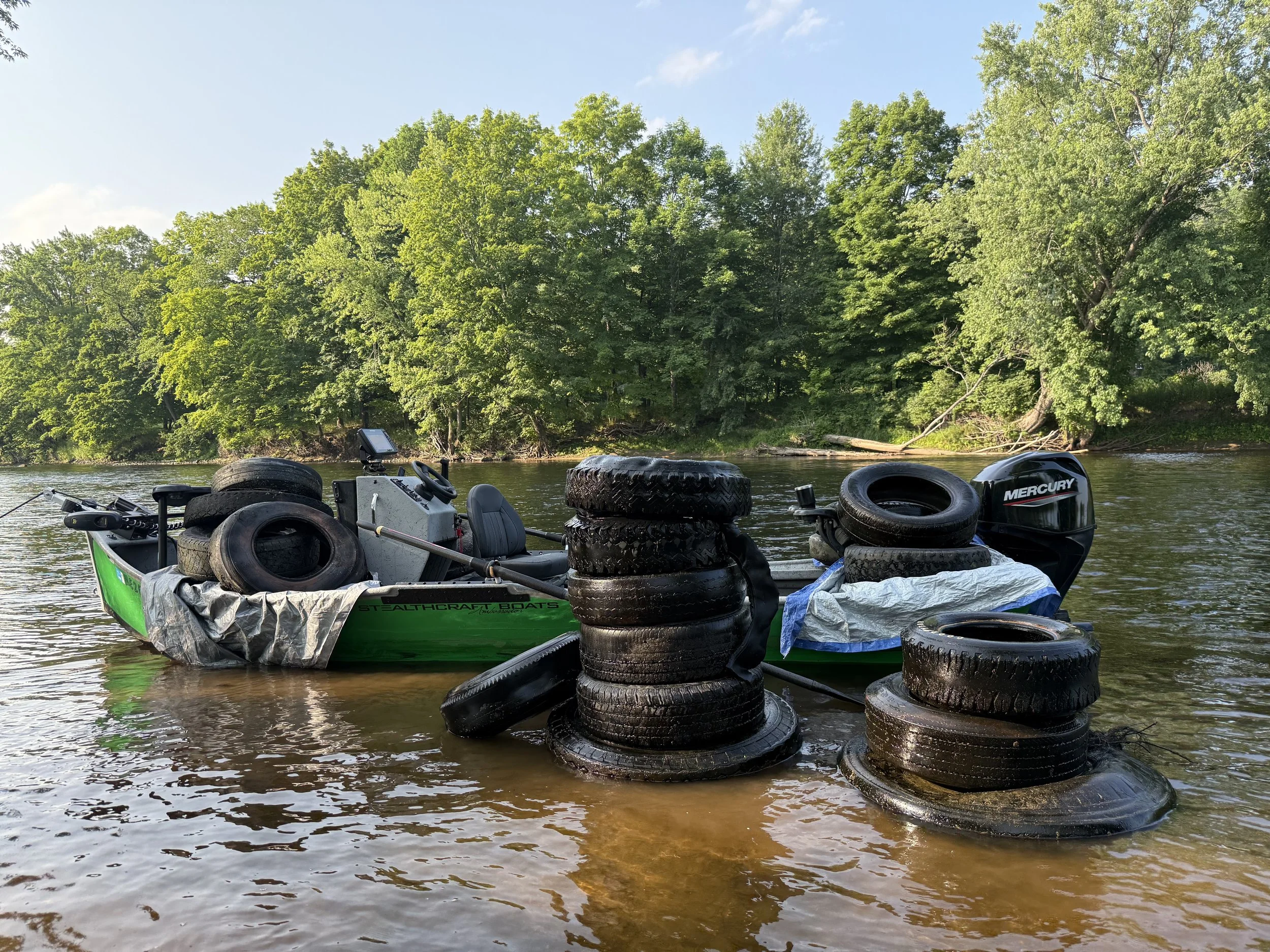 In the past the Androscoggin river was very polluted and disrespected, from the 1930s-1980s people threw there old tires in the river, and now the river is very clean and full of wildlife, mostly the old trash that is left is the tires, i have been volunteering my time after guiding and grabbing some tires off the bottom of the river, through the summer i collected 214 tires out of the river in my volunteer time. I see a need to rremove many more tires and there is so much work that we can not expect a volunteer to do this job completely. I am looking for funds to continue this project and do a full job including getting the tires in the challenging location, stuck in the mud and up to 20’ down, equipment is needed to remove these deep tires and the large tires, on average $8 per tire should be a fair labor rate, if you want to help support this river clean up please help through the Go Fund me i created for this.
